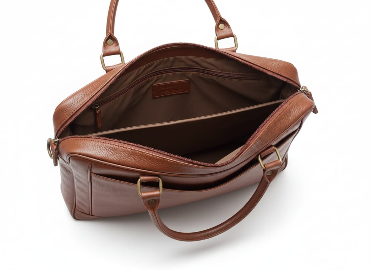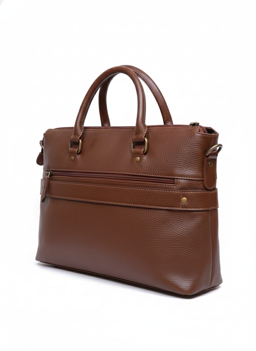 Adjustable Utility Strap: A wide, matching leather shoulder strap with a robust buckle for a customized fit during your commute.